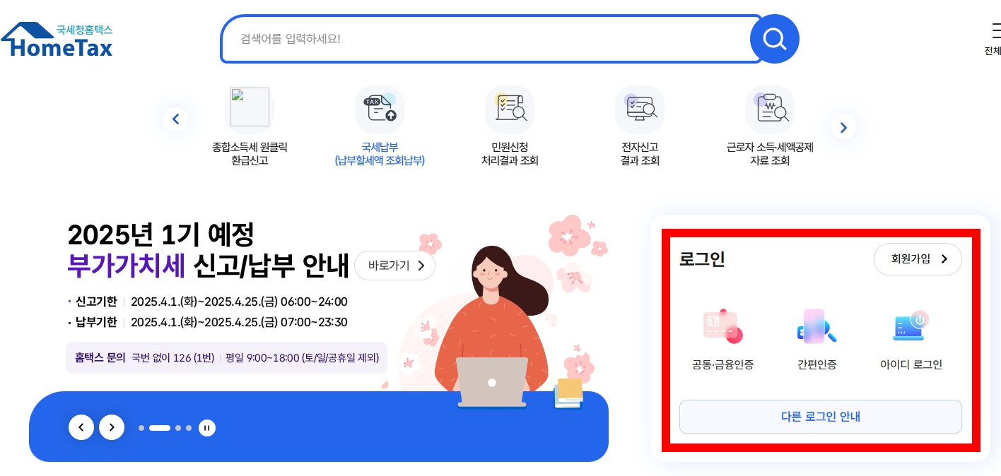 홈텍스에서 간편하게 이용하실 수 있습니다.