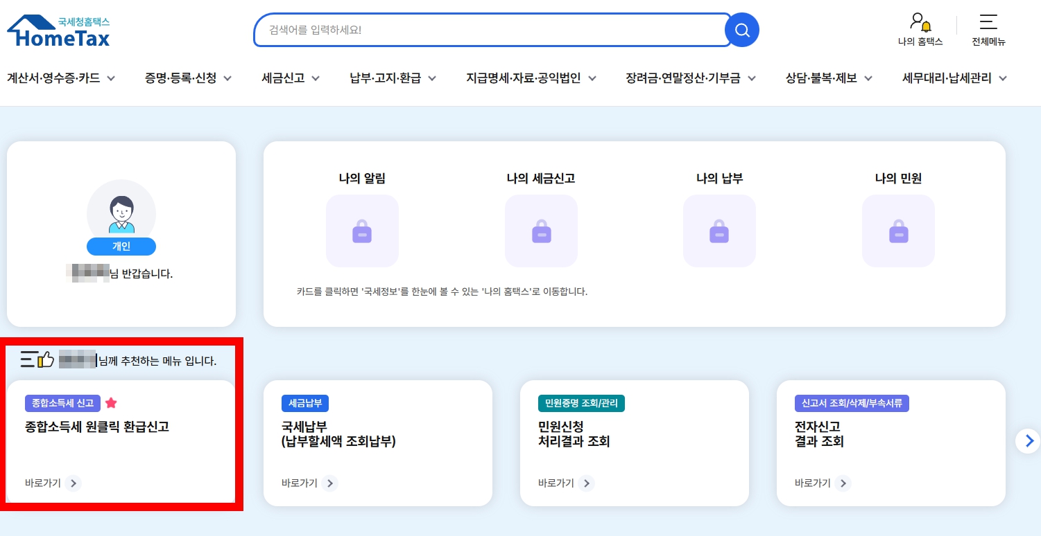 국세청에서도 종합소득세 환급 서비스를 출시.